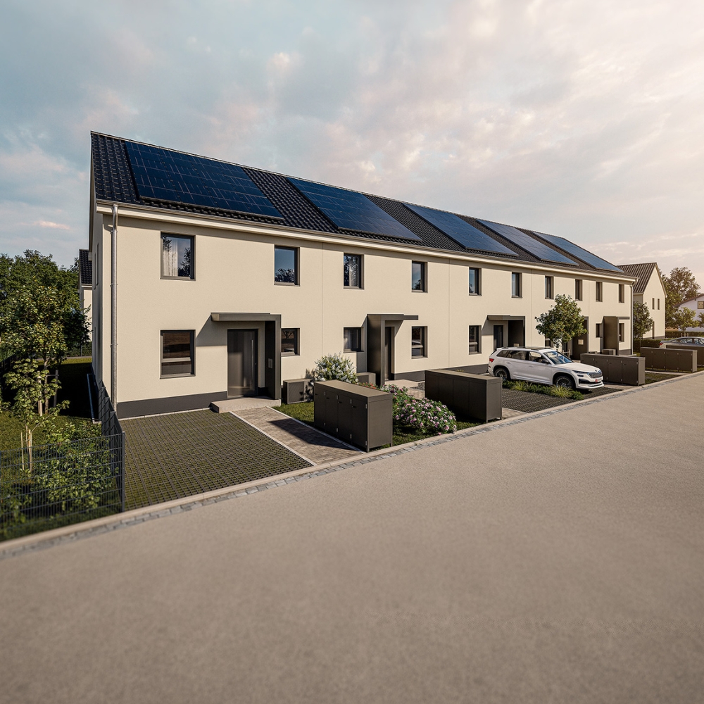 Mit dem KfW-40-QNG-Standard erfüllen wir höchste Anforderungen an Energieeffizienz. Photovoltaikanlagen, Wärmepumpen und moderne Dämmtechnik sorgen für niedrige Betriebskosten und machen die Häuser nahezu CO₂-neutral.